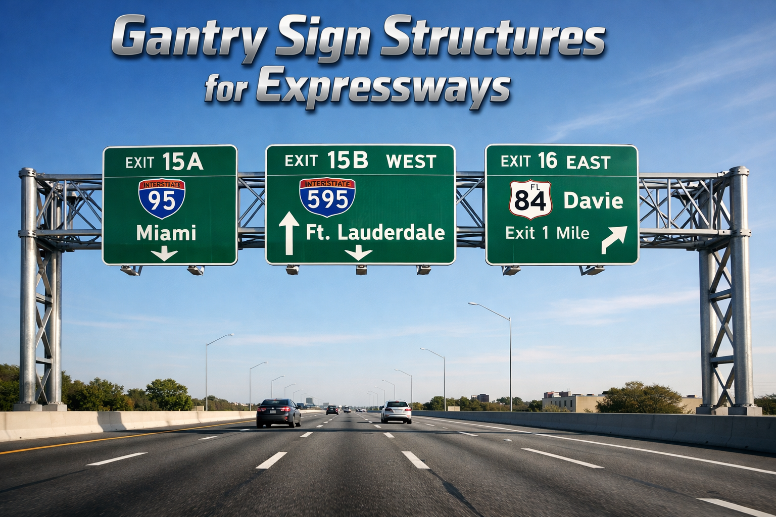 Gantry sign structures are widely used on expressways and highways to support large overhead sign boards.