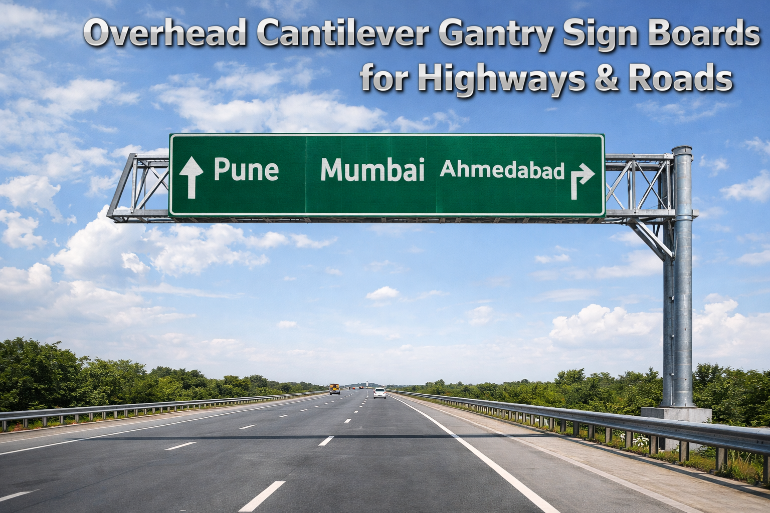 Overhead cantilever gantry sign boards are traffic signage systems installed on a horizontal arm supported from one side of the road. Unlike full-span gantries, these structures do not cover the entire width of the roadway, making them ideal for locations with space constraints. They are widely used on highways, flyovers, and urban roads to guide drivers effectively. :contentReference[oaicite:0]{index=0}