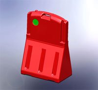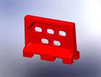 DESCRIPTION : One piece moulded L type road barrier made from superior grades of UV stabilized polyethylene materials with 2 way entry type base compatible with forklift and provided with corrugated ribs at bottom.The body provided with oval shaped openings ( 5nos ) and suitable provision for filling and drain of water. The overall size : 1000 L x 350 W x 750 H mm with usual process variation.