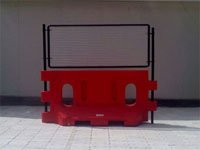 DESCRIPTION : One piece moulded Fence Barrier made from superior grades of UV stabilized polyethylene materials.The body provided with oval shaped openings ( 4 nos. ) and self support type 2 nos legs.The fence barrier to have inbuilt provision for interconnection as well as rotation up to 90 degree.The overall size : 2000 L x 550 W x 1200 H mm with usual process variation.
